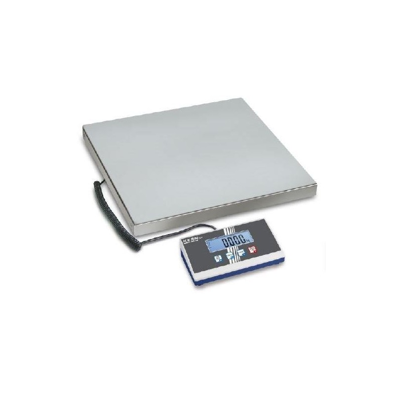 • Plato de acero inoxidable, base de acero barnizado • Manejo fácil y cómodo mediante 4 teclas • Soporte mural para montar el indicador en la pared, de serie • Pesaje sin sacudidas: En el caso de condiciones de pesaje inestables, se calcula un valor de pesaje estable creando un promedio • Pantalla LCD grande, altura de dígitos 25 mm • Dimensiones del indicador AxPxA: 210x110x45 mm • Longitud del cable del indicador aprox. 1,8 m • Puede utilizarse con pilas, 6 x 1.5 V AA no incluido, tiempo de funcionamiento aprox. 60 h • Temperatura ambiente admisible 10 °C 35 °C Dimensiones del plato de pesaje AxPxA 315x305x65 mm 550x550x65 mm, como ilustrado foto grande 945x505x65 mm