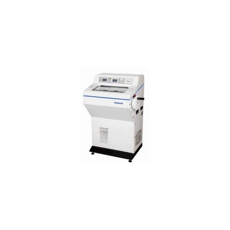 MOD. BK-2318 Características: *Monitor Pantalla LCD para eleguir secciones y el grosor total, grosor de sección, valor de retracción de muestra, ajuste de temperatura, datos, tiempo, temperatura y temporizador de encendido apagado * Lámpara DC compacta . * Puerta de vidrio desmontable. * La función de reposo automático da como resultado una vida útil más larga del compresor. * Función de bloqueo del teclado para evitar el mal funcionamiento por accidente * Un botón permite cambiar fácilmente entre el modo de recorte y el de sección. * Función de conteo para el número de secciones y el espesor total. * La función de retracción protege la muestra del daño de la cuchilla. * Un estante de congelación rápida de gran tamaño permite la preparación de 17 muestras al mismo tiempo. * Un bloqueo mecánico de la rueda manual garantiza un acceso seguro a la cámara, 16 posiciones para bloquear * La temperatura seteada se alcanza en 20 minutos en modo de enfriamiento rápido. * La función de auto detección del sensor de temperatura ayuda a advertir la falla en el sensor de temperatura. * La barra roja en el soporte de la cuchilla cubre toda la longitud de ella para proteger al usuario y la barra de empuje permite cambiar fácilmente la cuchilla * El micrótomo está fuera de la cámara de refrigeración para evitar el efecto de la expansión del calor y la contracción del frío, minimizando así la necesidad de mantenimiento. *Sistema de refrigeración criogénica forzada. *La refrigeración de semiconductores se puede encender y apagar Especificaciones Técnicas: Rango de espesor de sección 1 ~ 100um Incrementos de 1 um Incrementos de 2 um Incrementos de 5 um Alimentación de espesor de tiempo 10 ~ 400um Incrementos de 5 um Incrementos de 10 um Incrementos de 50 um Temperatura de la cámara -10 ºC ~ -40 ºC Temperatura de la cabeza de muestra -10 ºC ~ -40 ºC TIEMPO DE ENFRIAMINTO -40ºc 60min La temperatura más baja posible del elemento Peltier -45 ºC La temperatura más baja posible del elemento Peltier Junto con la congelación rápida +- -60 ºC Número de compresor Doble Refrigerante R404a Orientación de muestra XY - 8 ° Rotación de abrazadera de muestra Cualquier ángulo dentro de 360 ° Tiempo de funcionamiento del elemento Peltier 15 minutos Tamaño máximo de muestra 35mm * 35mm Ejecución vertical de la muestra 60mm Ejecución horizontal de la muestra 20mm Alimentación eléctrica Rápido 0.7mms Lento 0.35 mms Distancia de retracción de la muestra 0 ~ 100 m, en incrementos de 5 ?m Consumo 850W Fuente de alimentación AC220V ± 10%, 50Hz Tamaño externo 660 * 640 * 1130 mm Tamaño de embalaje W * D * H 790 * 790 * 1370 mm Peso bruto 170kg