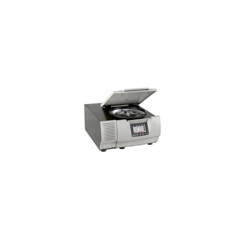 CARACTERISTICAS Tecnicas: - Pantalla TFT táctil para fácil lectura y selección de valores: R.P.M.F.C.R., en pasos de 100 R.P.M. y 10 xg, tiempo y aceleración frenado en pasos de 1 segundo. - Gráfico indicador de funcionamiento visible desde más de 3 m. - Listado de rotores y adaptadores en memoria. - Valores reales en pantalla de F.C.R. dependiendo de los adaptadores. - Reloj con cuenta atráscreciente desde 0 o desde “set R.P.M.F.C.R.” que permite resultados reproducibles. - Tecla de centrifugado rápido, con velocidad regulable. - Control de aceleración y frenado progresivo hasta 175 rampas. - Reconocimiento automático del rotor. - Cierre de tapa motorizado. - Controlada por microprocesador. - Apertura de tapa automática programable solo no refrigeradas. - Opción de bloqueomodificación de R.P.M.F.C.R. en funcionamiento. ESPECIFICACIONES : - Motor de inducción libre de mantenimiento. - Gran capacidad: Máx. Volumen 4 x 750 ml. - Alta velocidad, hasta 20.804 xg.14.300 R.P.M. - Silenciosa: nivel de ruido inferior a 60 dB. - 15 memorias + programa pre-enfriamiento. Seguridad: - Bloqueo de tapa y protección frente apertura en funcionamiento. - Apertura manual de emergencia - Protección ante caída de tapa. - Parada por desequilibrio. - Cámara de centrifugación en acero inoxidable. - Visor en la tapa para calibración y comprobación del funcionamiento. - Continuo chequeo del estado del equipo mostrado al usuario mediante mensajes en pantalla. - Aro de seguridad protector entre la cámara de centrifugación y el exterior del equipo. Refrigeración: - Programa de pre-enfriamiento con rotor girando y temperatura regulable por el usuario. - 4°C a Máx velocidad como mÍnimo. - Regulación de la temperatura de -20°C a 40°C - Programable en grados Celsius o Fahrenheit. - Sensor temperatura en interior cámara, gas R 404A HFC - Dimensiones : 720A*805L*390H - Peso neto : 95Kg - Voltaje : 220V50Hz - Consumo : 1500W Normas y directivas comunitarias: Directivas comunitarias: 9879EC, 200695EC, 2004108EC, 201165EU, 201219EU. Normas: EN 61010-1, EN 61010-2-020, EN 61326-1.